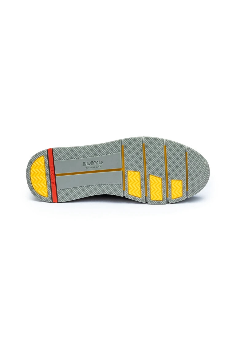 The LLOYD trainers made with grey rough leather feature an easy-care upper material. The shoes are perfect for a straightforward look. The wear-resistant rubber sole cushions the impact when walking and the synthetic of the inner sole provides lightness in wear. A firm, secure grip as well as a original and high-quality look are ensured with the soft rough leather upper and the laces. These shoes are comfortable and breathable by use of the leather and textile lining. The model features a Variofootbed which is optimally suited for inlays thanks to the removable insole.