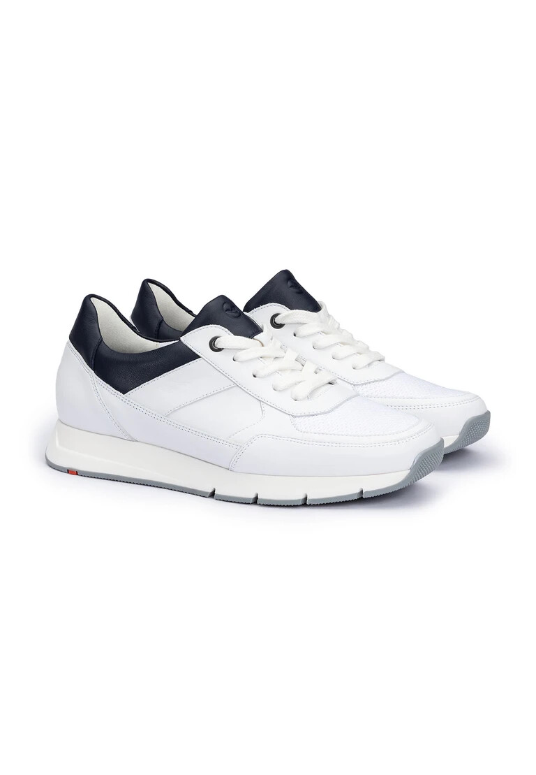 The LLOYD ALEXIS combines elegant design and high comfort in a low-top sneaker. Made from high-quality smooth leather and modern textile, it is ideal for both business and leisure wear. The breathable rubber sole ensures optimum support, while the removable Variofootbed with extra-light comfort allows for individual adjustment. With its rounded cut, the shoe offers both style and comfort for the discerning gentleman. The carefully balanced lining made of 60% textile and 40% leather harmoniously complements the overall look. In classic white, the ALEXIS stands out effortlessly in any environment. It sets stylish accents and guarantees a comfortable fit at the same time.