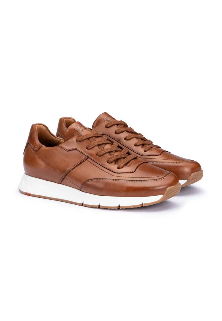 Present the LLOYD “AMSTERDAM” sneaker, which impresses with its high-quality smooth leather upper and appealing brown color scheme. The round toe shape creates a timelessly elegant silhouette that is perfect for both business and leisure occasions. With a combination of 60% leather and 40% textile in the lining, the shoe offers an appealing feel and long-lasting comfort. The lace-up fastening allows you to customize the feel, while the removable insole gives you the option of adapting the sneaker to suit your needs. Another highlight is the Extralight design, which promises lightness and flexibility. The LLOYD “AMSTERDAM” combines stylish design and functionality in an ideal way for modern men.