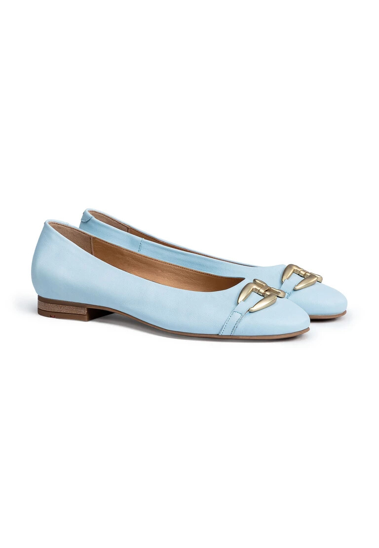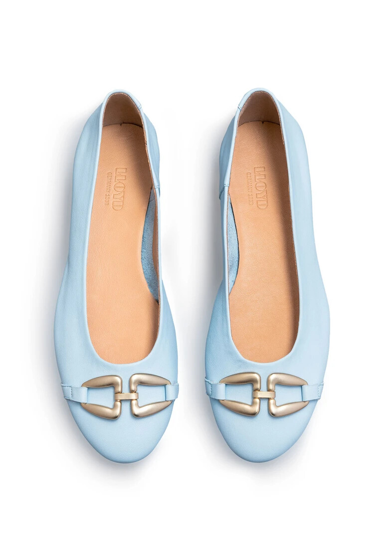 LLOYD presents the ballerina: made with blue smooth leather, the shoes boast a fashionable design. A charming and feminine look is guaranteed in these shoes. A non-slip rubber sole is utilized. This cushions the impact when walking while the leather of the inner sole offers good heat regulation. With the low block heel the shoes offer secure footing and permit comfortable daily wear. The shoes’ soft smooth leather upper and elasticated band ensure a classic, elegant look and quick putting on and taking off. These ballerinas are breathable and comfortable by use of the leather lining.