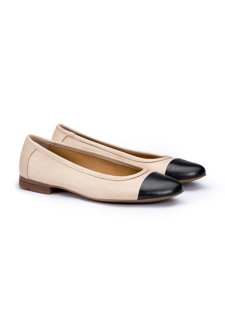 The LLOYD ballerinas for women combine elegance with maximum comfort. Made from high-quality smooth leather and equipped with a robust rubber sole, they offer both stability and flexibility. The comfortable leather lining ensures a pleasant foot climate, while the round toe creates a feminine silhouette. The ballerinas are ideal for festive occasions and impress with their simple beige color. Thanks to the practical slip-on fastening, they are easy to put on and take off. Make a fashion statement with these stylish and timeless ballerinas.