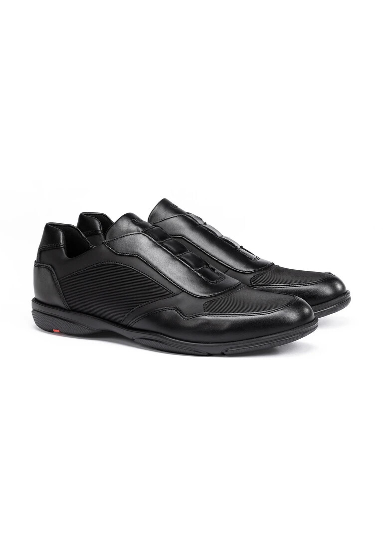 LLOYD presents the “BLAIR” slip-ons: crafted from black smooth leather, the shoes boast a remarkably light sole. Easy handling by simply slipping into them is guaranteed in these leather slip-ons. Their wear-resistant rubber sole cushions the impact when walking perfectly. On top of that, the synthetic of the inner sole ensures lightness in wear. The elasticated band as well as the soft smooth leather upper guarantee a classic, elegant appearance and easy putting on and taking off. These slip-ons are comfortable and breathable by use of the leather and textile lining. With this Variofootbed, the model is optimally suited for the use of inlays thanks to the removable insole.