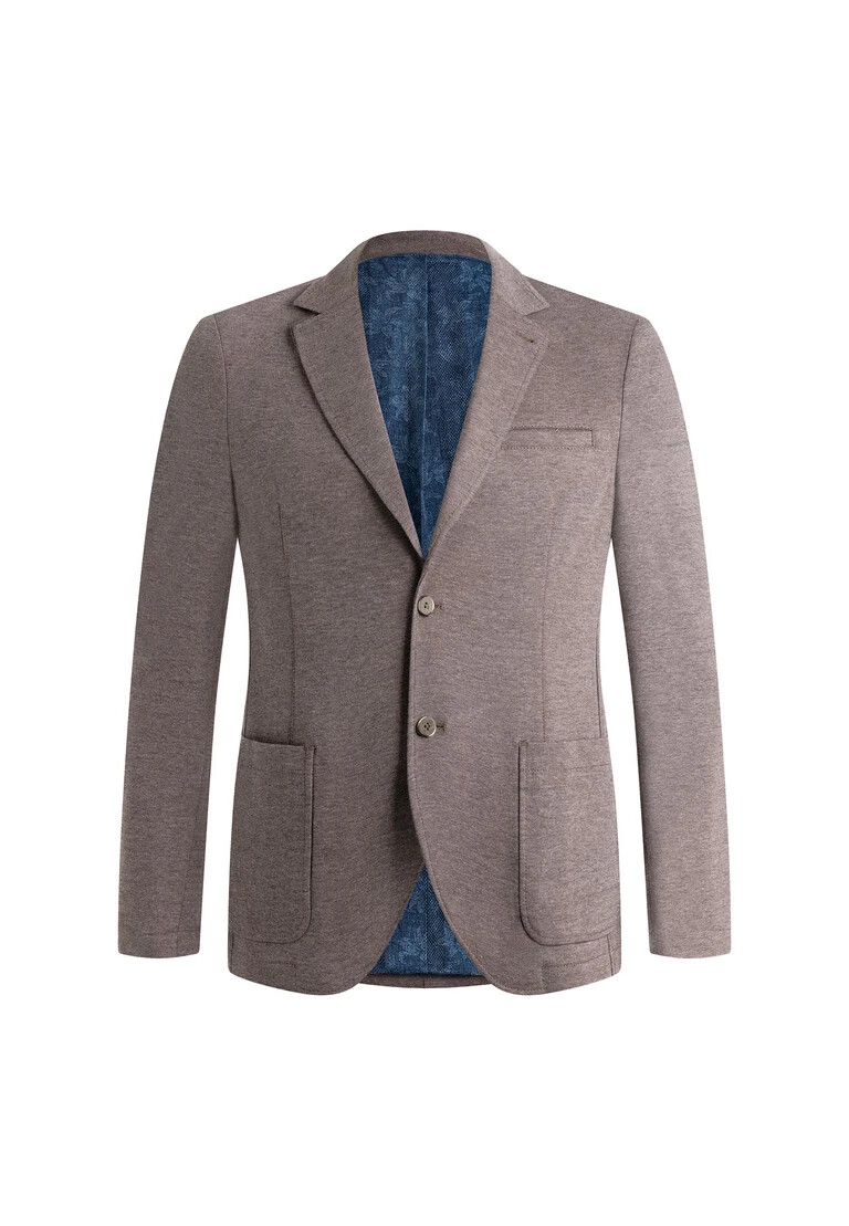 The CARLOS jacket from LLOYD in a modern fit is an ideal choice for men who value elegance and contemporary design. This jacket is characterized by a sharp lapel collar and a classic single-breasted construction with two buttons. The signature kissing buttons on the cuffs add a sophisticated detail that enhances the look. The detailed work is also evident in the piped flap pockets and the slanted breast pocket, which are not only practical but also stylish. On the inside, CARLOS features a smooth lining in the sleeves as well as in the back and front, which ensures comfort and an optimum fit. Two placed inner pockets, which can be securely fastened with buttons, offer additional storage space for essentials. This jacket combines functionality with style, making it perfect for everyday business wear as well as special occasions.