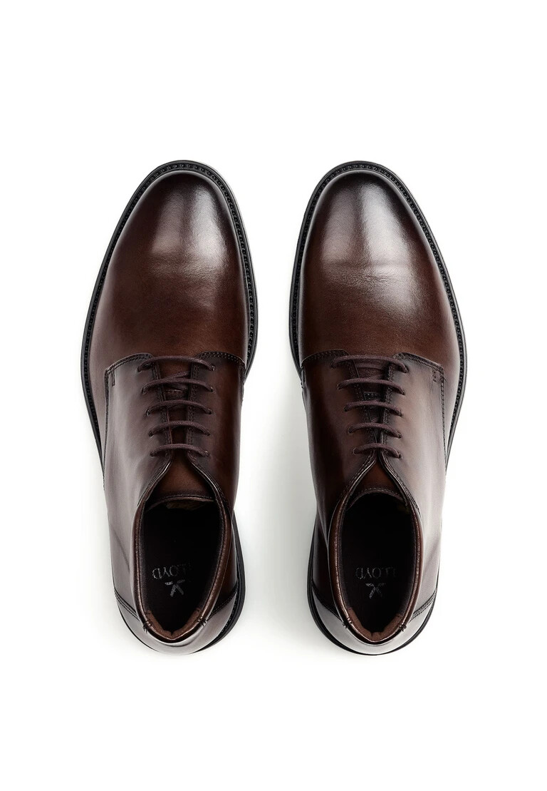 Discover the CORE 335 by LLOYD, an elegant fusion of ankle boot and desert boot, perfect for business and leisure. This men’s shoe impresses with its high-quality smooth leather in classic brown and a robust rubber sole. Thanks to the laces, it can be adjusted to fit the foot perfectly. The inner lining made of 60% textile and 40% synthetic offers a comfortable fit. The round toe gives the design a modern touch. Whether in the office or on a stroll through town – this shoe is a reliable companion for all occasions. Please note that the insole is not removable.