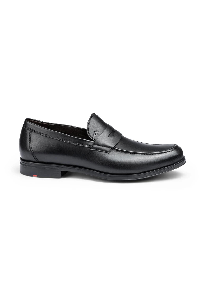 LLOYD offers a slip-on shoe made of black leather that impresses with an extremely lightweight and shock-absorbing sole. The slip-on shoe is easy to slip on and off. The elastic rubber sole provides ideal cushioning when walking. With the flat block heel, the slip-on shoe offers a secure stance and is particularly suitable for everyday wear. The elasticated strap and soft, roughened leather ensure an original, high-quality look and make them easy to put on and take off. The leather lining makes the slip-on shoe breathable and comfortable. The Extralight sole makes the model particularly lightweight and flexible, as well as non-slip and shock-absorbent.