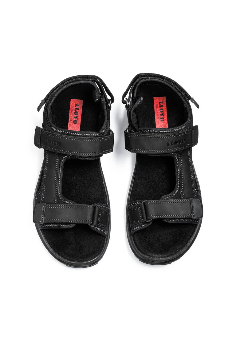 The LLOYD “ECHO” sandals crafted from black smooth leather feature a classic design. In these shoes, a light and breezy look for sunny days is a given. The flexible rubber sole cushions the impact when walking perfectly.. The velcro fastener and the soft smooth leather upper guarantee a classic, elegant appearance and easy and quick fastening. Thanks to the synthetic lining these shoes are breathable.