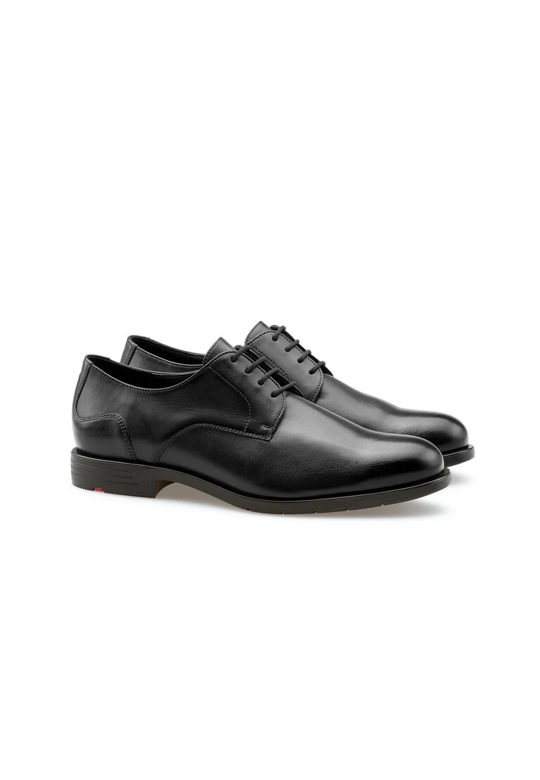 The LLOYD EEZY 110W Derby lace-up shoe is the ideal choice for the modern man in everyday business life. In classic black and made from high-quality smooth leather, this shoe offers a round toe and elegant lines. The robust rubber sole guarantees durability, while the mix of textile and synthetic in the lining ensures comfort. A special feature of this model is the removable insole, which allows flexibility in everyday life. The shoe is functional with features such as Easygoing and Xtrawide, which ensure a comfortable fit. Thanks to the classic lacing, the EEZY 110W can be perfectly adapted to the foot. A reliable companion for anyone who values quality and comfort.
