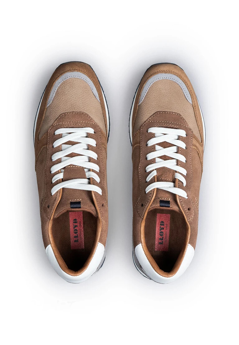 The LLOYD ELMORE trainers combine stylish design and comfort for the modern man. This low-top sneaker features a high-quality combination of smooth and suede leather in the upper, accentuated by a versatile color scheme. The robust rubber sole offers durability and support, while the inner lining, a mixture of leather and textile, ensures a comfortable fit. A removable microfiber insole supports individual foot adjustment and makes it easier to care for the shoe. The classic lace-up fastening ensures a perfect fit. Ideal for leisure activities, the ELMORE trainers add a fashionable accent to any outfit.