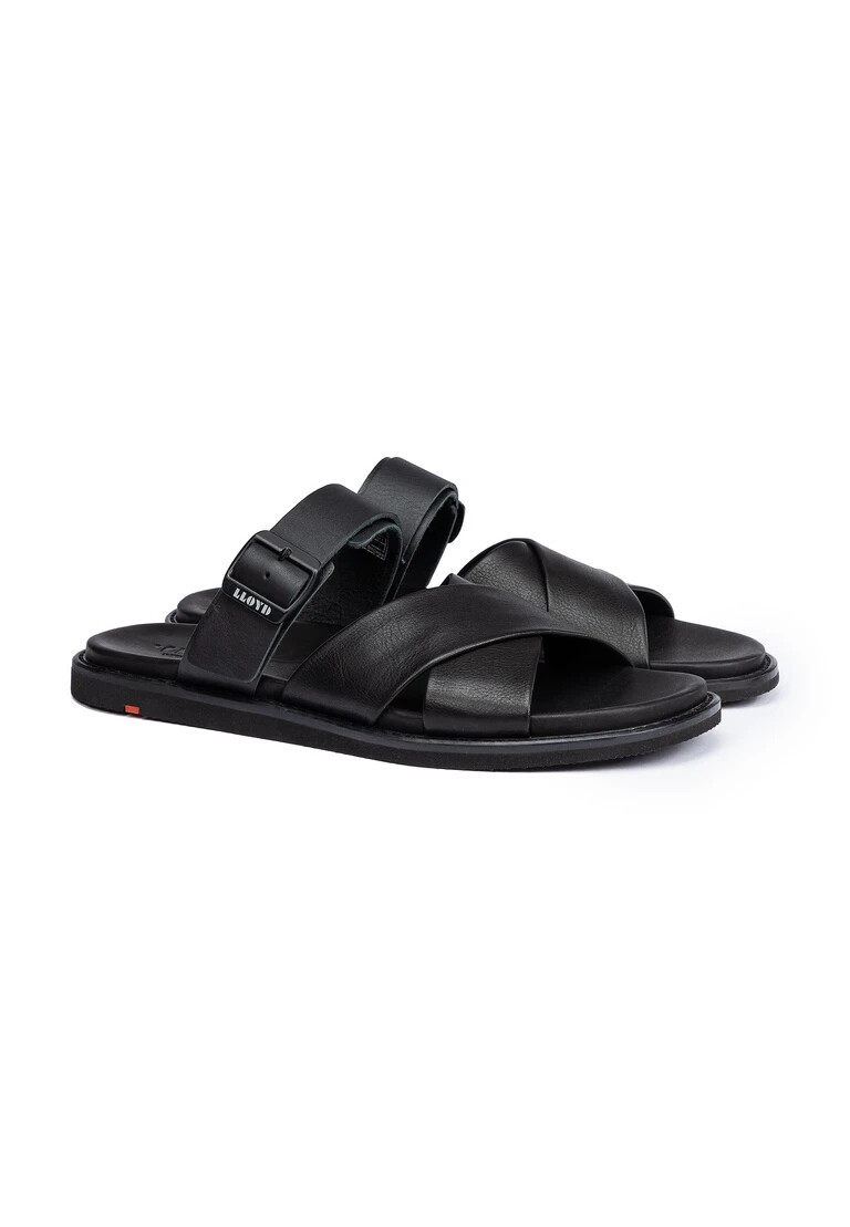 LLOYD presents the “EMINET” sandals: made with black smooth leather, the shoes boast a sporty design. A light and breezy look for sunny days is guaranteed in these shoes. A wear-resistant rubber sole cushions the impact when walking and the leather of the inner sole offers good heat regulation. Easy putting on and taking off and a classic, elegant look are ensured with the soft smooth leather upper, the elasticated band and buckle fastening. By use of the leather lining these shoes are breathable and comfortable.