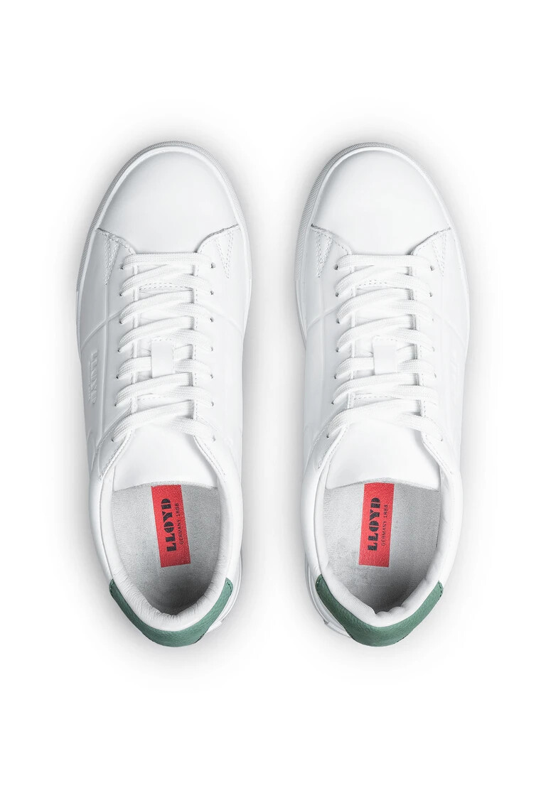 Discover the LLOYD ENRICO, a fashionable men’s sneaker that is the perfect companion for business and leisure. This low-top sneaker features a grained leather upper in a timeless white color. The robust rubber sole offers durable support, while the 60% terrycloth and 40% leather lining ensures a comfortable fit. Thanks to the classic lacing, the shoe can be individually adjusted. The highlight of the ENRICO is the removable Variofootbed, which is complemented by the microfiber insole. Simple, stylish and versatile – these trainers are the perfect finishing touch to any outfit. An ideal companion for the style-conscious gentleman.