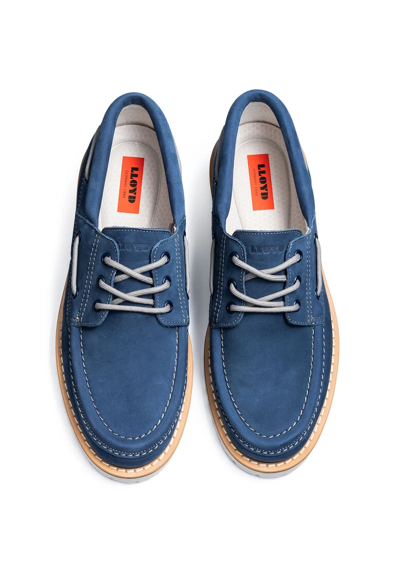 The LLOYD “FAIRBANKS” norwegian style shoes crafted from blue rough leather feature an extremely light and shock-absorbent sole. A chic and more distinctive look is guaranteed in these shoes. Their wear-resistant rubber sole cushions the impact when walking perfectly. On top of that, the synthetic of the inner sole ensures lightness in wear. The shoes’ soft rough leather upper and laces ensure a original and high-quality appearance and a firm, secure grip. These leather and textile lined shoes are comfortable and breathable. The model has a Variofootbed which is ideally suited for the use of inlays thanks to the removable insole.