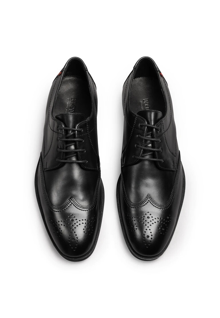 Discover the LLOYD FARLEY, an elegant lace-up shoe that perfectly combines style and elegance. This shoe is made of high-quality smooth leather and is characterized by its black color scheme, which suits any festive or business occasion. The robust rubber sole offers durability and stability. The classic round toe style complements the simple yet sophisticated design. Inside, the shoe is lined with a fine leather material that ensures comfort. The LLOYD FARLEY is designed as a derby shoe, which gives it a timeless flair. Ideal for anyone looking for a reliable and stylish companion.