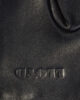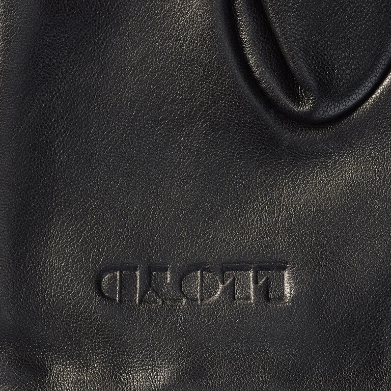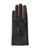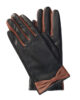 The black gloves are given a special touch by brown inserts. A bow is another fine detail of the comfortable gloves.
