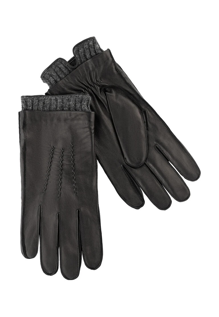 The glove by LLOYD, made from soft sheepskin leather, features distinctive stitching on the back of the hand. A short elastic cuff on the inside ensures a secure fit, while the high-quality knitted insert allows for easy entry. The lining is a wool-polyester blend, and the gloves are touchscreen compatible, making it easy to use your devices.