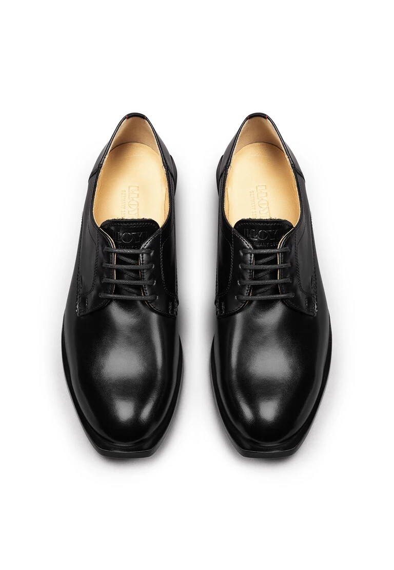 The LLOYD lace-up shoes made with black smooth leather feature a fashionable design. The men’s lace-up shoes guarantee a secure fit with lace fastening. A adaptable leather and rubber sole cushions the impact when walking and guarantees comfortable long wear and the leather of the inner sole contributes to good heat regulation. The shoes offer secure footing and permit comfortable everyday wear by the low block heel. The shoes’ soft smooth leather upper and laces ensure a classic, elegant look and a firm, secure grip. By use of the leather and textile lining these shoes are comfortable and breathable.