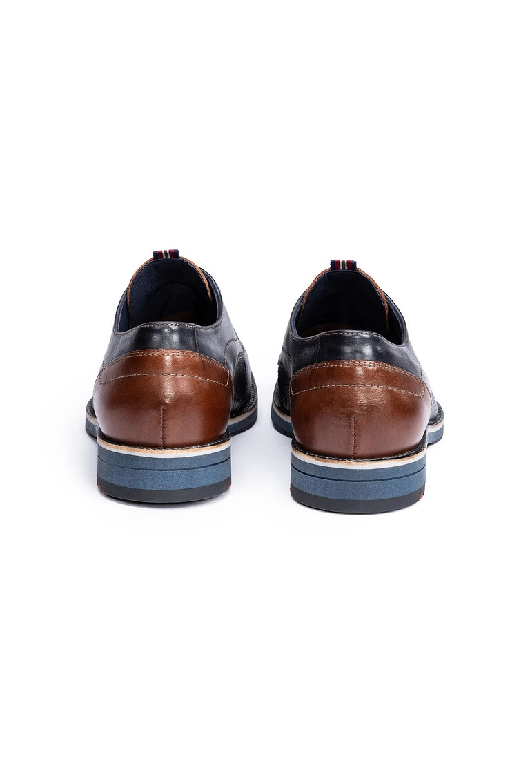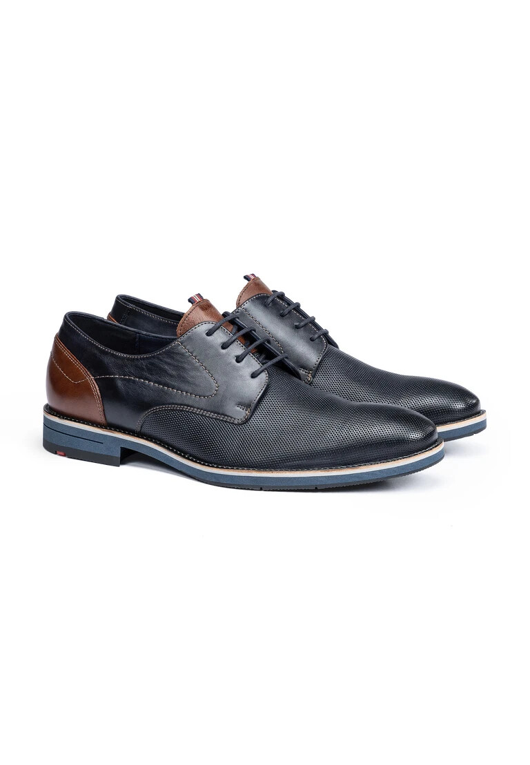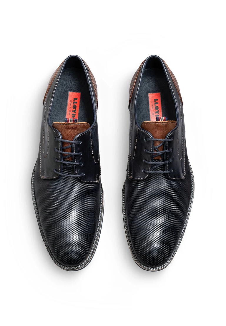 Catch the eye with the LLOYD derby shoes “HARRIS” made from blue smooth leather and a sporty design. A classic and elegant look is guaranteed in these men’s shoes. A wear-resistant rubber sole is used. This cushions the impact when walking. The lace-up shoes’ stylish leather upper and laces ensure a modern, high-quality appearance and a firm, secure grip. These leather and textile lined shoes are comfortable and breathable. With this Variofootbed, the model is ideally suited for inlays thanks to the removable insole.