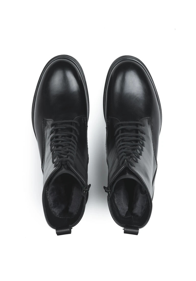 Discover the elegance and comfort of the LLOYD HAVEN 375 L ankle boot. This model is characterized by its high-quality smooth leather in classic black. A practical zipper makes it quick to put on and take off. The Extralight rubber sole offers lightness and cushioning with every step. Inside, the 100% lambskin lining ensures a pleasantly warm and soft feel, ideal for cooler days. With its round toe and versatile casual design, the shoe combines style with everyday practicality. The LLOYD HAVEN 375 L ankle boot is the perfect choice for those who don’t leave comfort to chance.