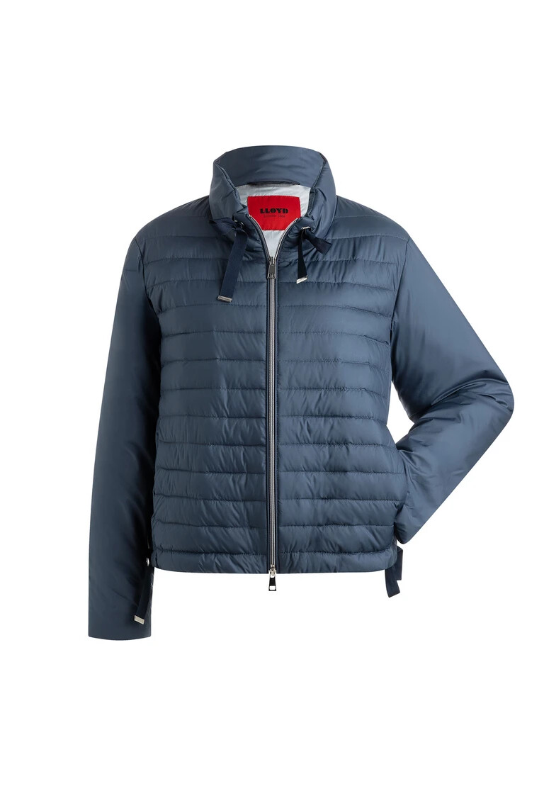 This sporty jacket from LLOYD combines functionality with fashionable accents. Made from a robust polyester/polyamide blend, this jacket is durable and comfortable to wear. The back is carefully quilted and has 60g padding for additional warmth and comfort. Practical slit pockets are seamlessly integrated into the dividing seam, while the stand-up collar features a drawstring and an eye-catching glitter ribbon. These details are complemented by a drawstring in the hem, decorated with glittering rib tape, which gives the jacket a unique character. The metallic 2-way nylon zipper adds another stylish and functional component. A decorative zig-zag stitch on the sleeve rounds off the overall look of this stylish jacket, making it the ideal companion for active everyday wear.