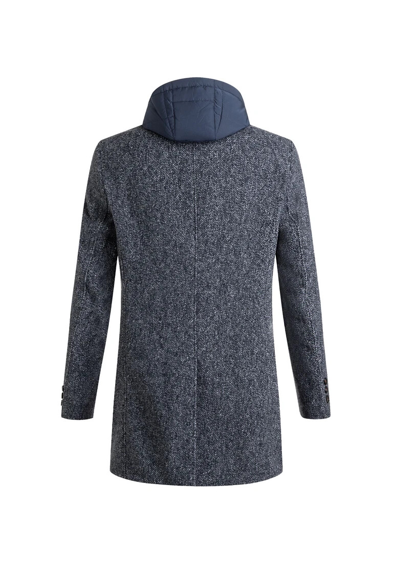 The LLOYD Wool Coat with a straight cut combines classic elegance with modern design. Made from a premium wool-polyester blend, it provides warmth and comfort during cold seasons. The notch lapel collar and detachable panel with adjustable hood offer protection against wind and weather. The coat closes with a zipper and button placket for a secure fit. Three buttons at the sleeve ends add an elegant touch. Side pockets, a back vent in the middle, and smooth lining ensure functionality and comfort. One interior pocket with a button closure and another interior pocket secured with a zipper provide ample space for personal items.