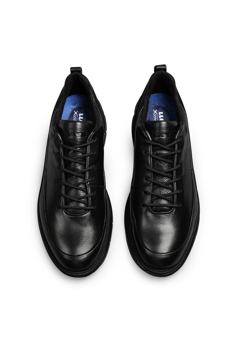 The LLOYD trainers crafted from black smooth leather feature a sporty design. A casual look is guaranteed in these shoes. The wear-resistant rubber sole cushions the impact when walking perfectly. Additionally, the synthetic of the inner sole ensures lightness in wear. The shoes’ soft smooth leather upper and laces guarantee a classic, elegant look and a firm, secure grip. Thanks to the wool lining these shoes are insulated and warm and also snug during cold days.