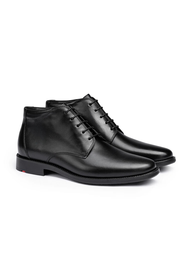 Make a statement with the LLOYD lace-up shoes made from black smooth leather and a fashionable design. The men’s lace-up shoes persuade with a classic and elegant look. The flexible rubber sole cushions the impact when walking and the wool lining of the inner sole provides a warm interior. With the low block heel the shoes offer secure footing and allow comfortable everyday wear. A firm, secure grip as well as a classic, elegant look are guaranteed with the soft smooth leather upper and the laces. These wool lined shoes are insulated as well as snug during cold days.