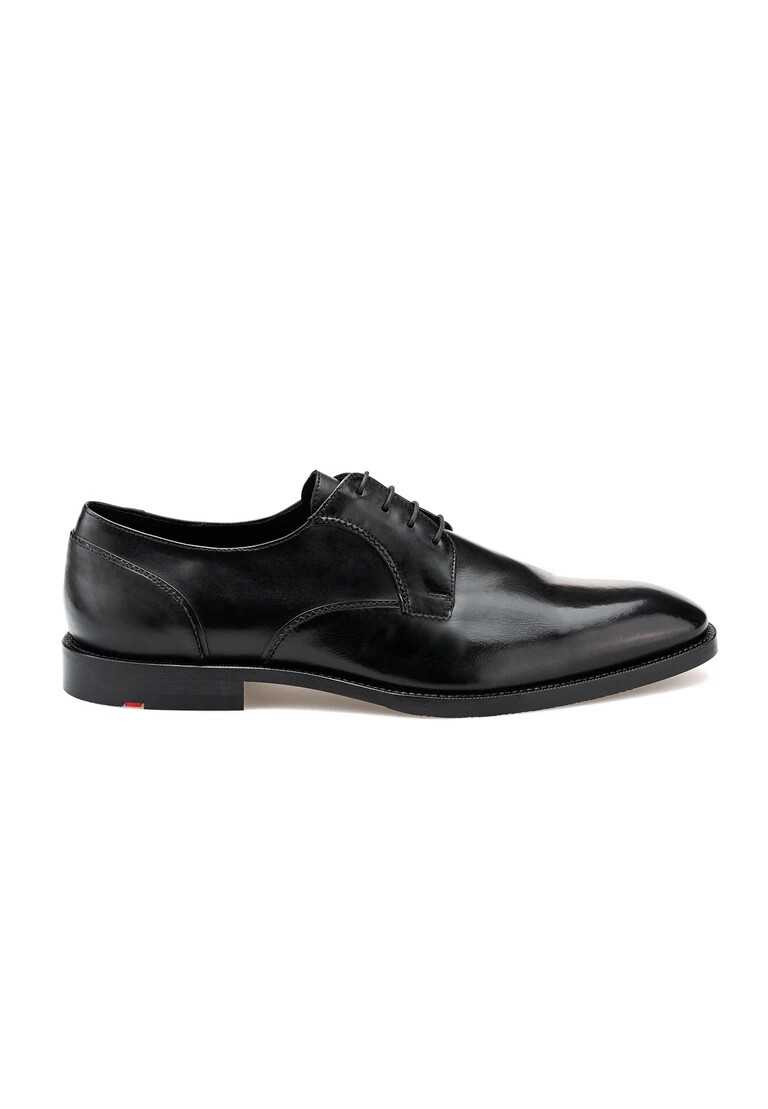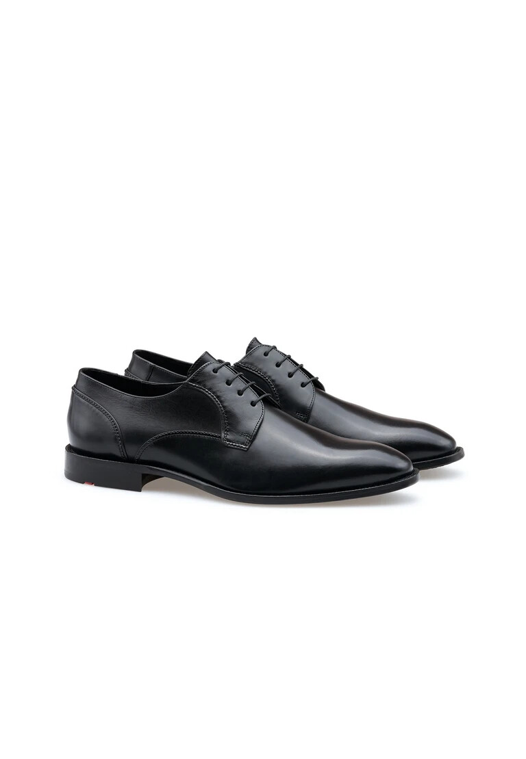 Discover the NOBEL 110 from LLOYD, an exquisite derby shoe for the highest demands in the business sector. The upper material made from high-quality smooth leather in classic black gives this shoe an elegant look. The toe of the shoe has a slender square shape, giving the design a modern touch. The sole, made from a combination of leather and rubber, ensures the perfect balance between elegance and durability. Fully lined with leather on the inside, the shoe offers a pleasant foot climate and a high level of comfort. The NOBEL 110 is a timeless companion for anyone who values style and quality. Whether for meetings or festive occasions, with this shoe you can show stylish self-confidence.