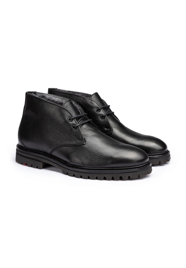 Discover the LLOYD OXFORD, an ankle boot that is ideal for both everyday business and leisure activities. This shoe combines stylish, grained leather in classic black with a robust rubber sole for durability and comfort. The round toe offers plenty of room and makes for a comfortable fit. The entire interior is lined with high-quality lambskin, which makes the ankle boot particularly warm. The practical lacing allows the boot to fit the foot perfectly. The elegant design and high-quality material will quickly make the OXFORD an indispensable addition to your shoe collection. A model that combines aesthetics and function.