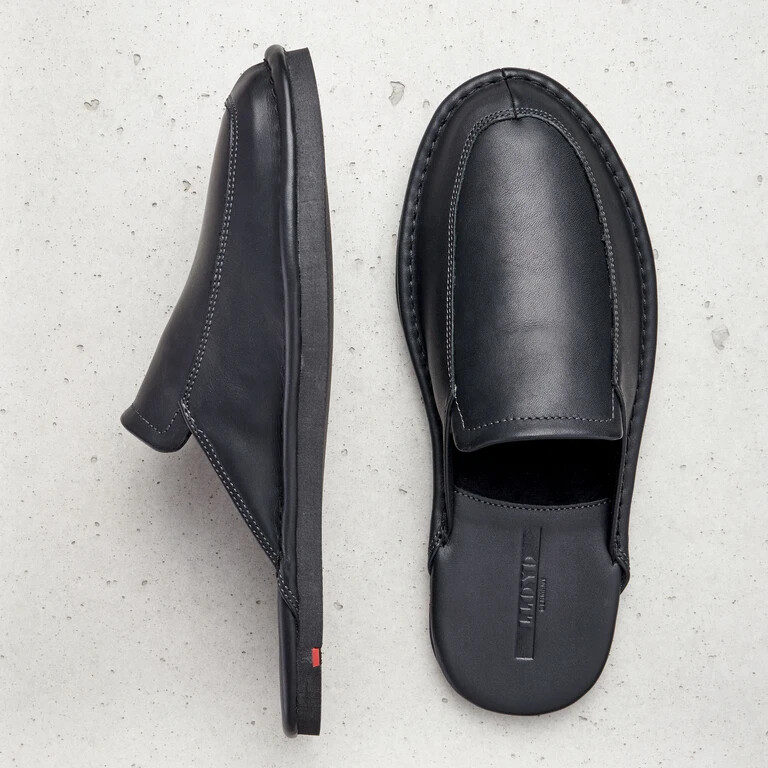 Practical for business trips or vacation: the high-quality travel slippers made of supple calfskin. So you feel like home even on the road. The slippers can be transported in the lightweight textile bag.