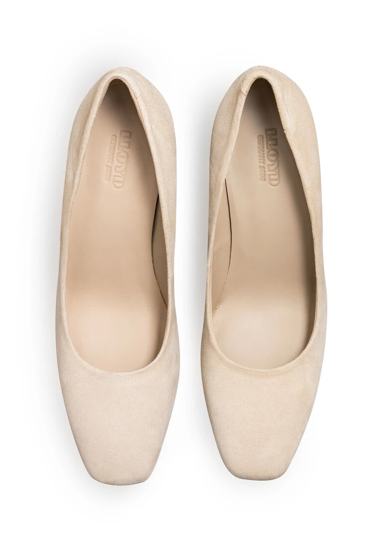 The LLOYD pumps designed with beige rough leather feature a pleasant wearing comfort. An elegant and feminine look is guaranteed in these heeled shoes. A non-slip rubber sole is used. This cushions the impact when walking while the leather of the inner sole ensures good heat regulation. The elegant, slim squared toe, creates a narrow silhouette. With the low stiletto heel the feminine look is emphasised. The shoes’ soft rough leather upper and elasticated band ensure a original and high-quality appearance and easy putting on and taking off. By use of the leather lining these shoes are breathable and comfortable.