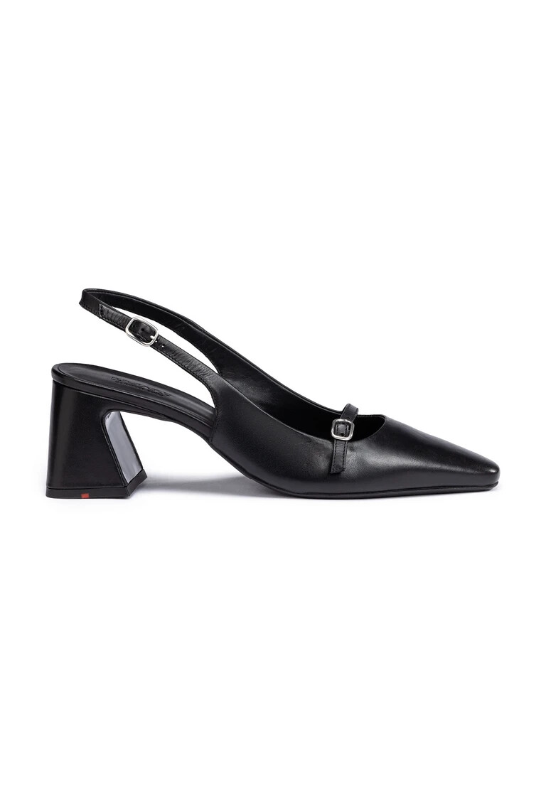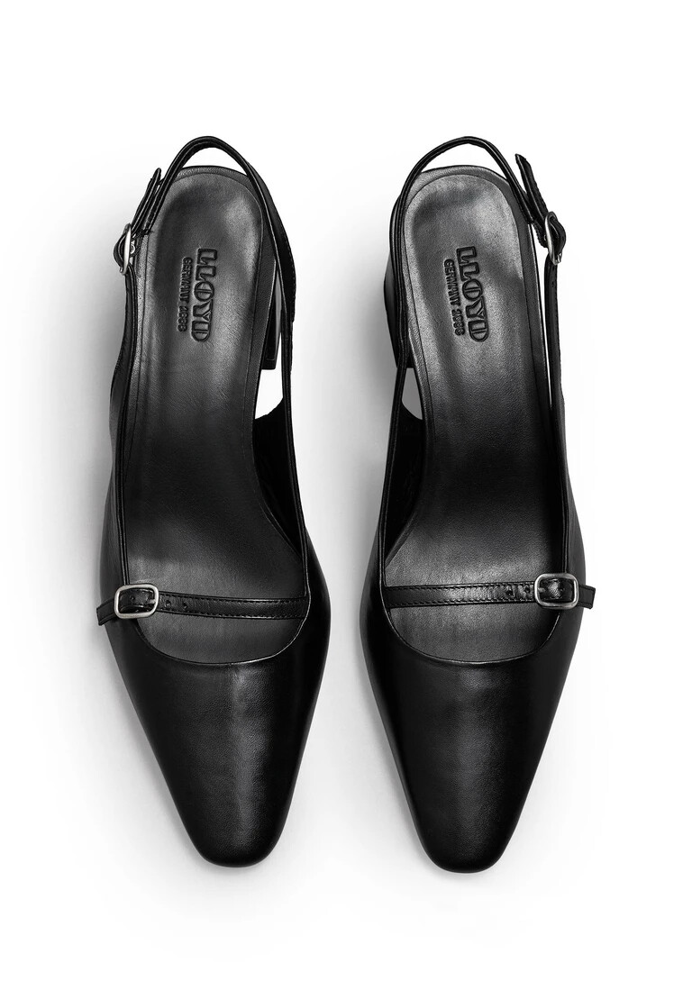 The LLOYD pumps made with black smooth leather feature a classic design. In these pumps, an elegant and feminine look is a given. The non-slip rubber sole cushions the impact when walking and the leather of the inner sole contributes to optimal heat regulation. The extravagant, pointed toe, gives the feet an on-trend shape. Thanks to the low block heel the shoes offer secure footing and permit comfortable daily wear. The elasticated band, buckle fastening as well as the soft smooth leather upper guarantee a classic, elegant look and quick putting on and taking off. These leather lined shoes are breathable and comfortable.
