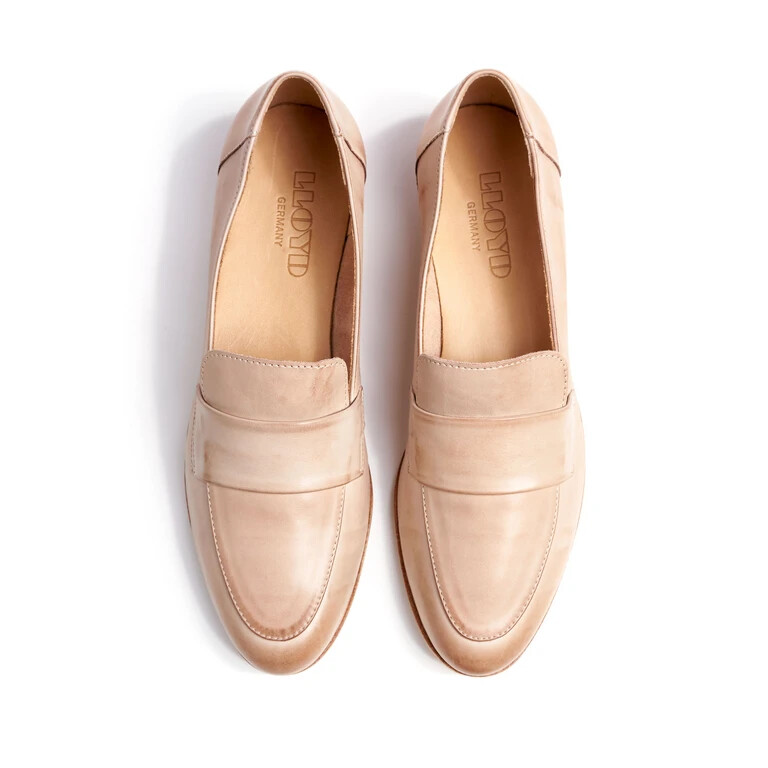 Easy handling by simply sliding into them is guaranteed in these shoes. Their adaptable leather and rubber sole cushions the impact when walking for long wear. On top of that, the leather lining of the inner sole provides good heat regulation. The classic, almond toe, makes the feet appear narrower. Even on warmer days the unlined shoes can easily be worn sockless thanks to their airiness.