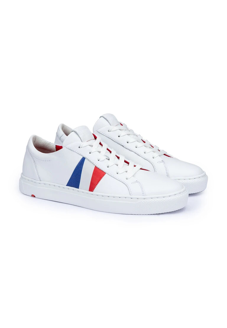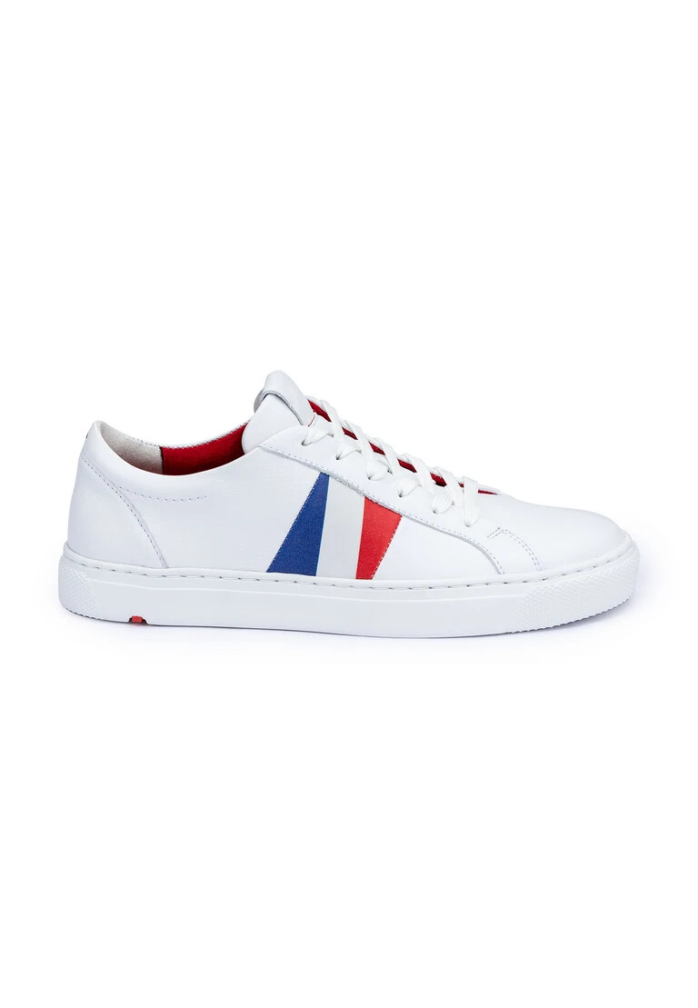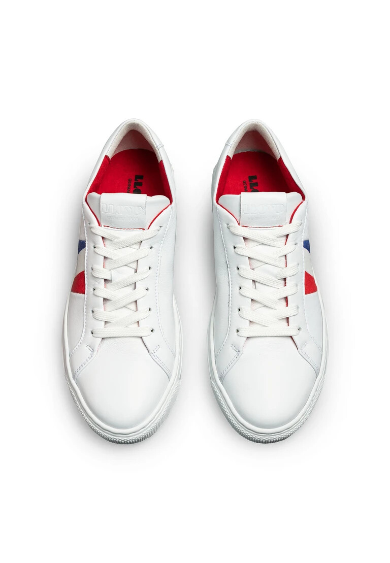 Our exclusive white trainers with the French flag on the side are the perfect accessory for all football fans for Euro 2024. Manufactured by the renowned brand LLOYD, this shoe embodies first-class quality and style. With an upper made from high-quality smooth leather and classic lacing, it not only offers comfort, but also an appealing design. With its timeless style and excellent workmanship, this shoe is not only an eye-catcher during the European Championships, but also beyond. Show your allegiance to the French national team and make a fashion statement with this special model from LLOYD. Treat yourself to this unique trainers and be ready to celebrate your passion for football in style.