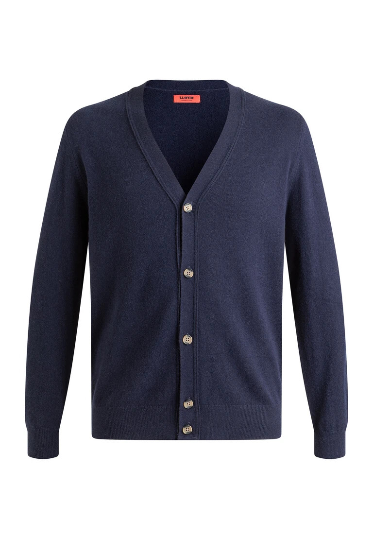 This high-quality V-neck cardigan from LLOYD impresses with its classic, straight cut and elegant material blend of 90% merino wool and 10% cashmere. The soft ribbed cuffs and hem ensure a perfect fit, while the five buttons give the jacket a timeless accent. Ideal for stylish and comfortable outfits – whether in the office or in your free time.