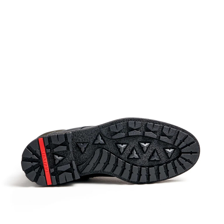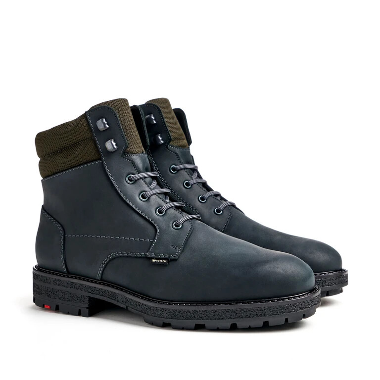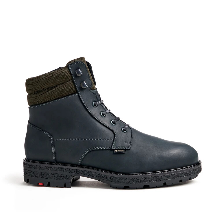 The LLOYD “VARNDELL” lace-up ankle boots designed with black smooth leather feature an all over waterproof and extremely breathable GORE-TEX membrane suited for any weather. In these lace-up shoes, a biker chic look is a given. Their wear-resistant rubber sole cushions the impact when walking perfectly.. The zip fastening as well as the soft smooth leather upper guarantee a classic, elegant appearance and quick fastening. Even when it’s cold these shoes are warm, regulate the temperature as well as snug by use of the lambskin fur lining.