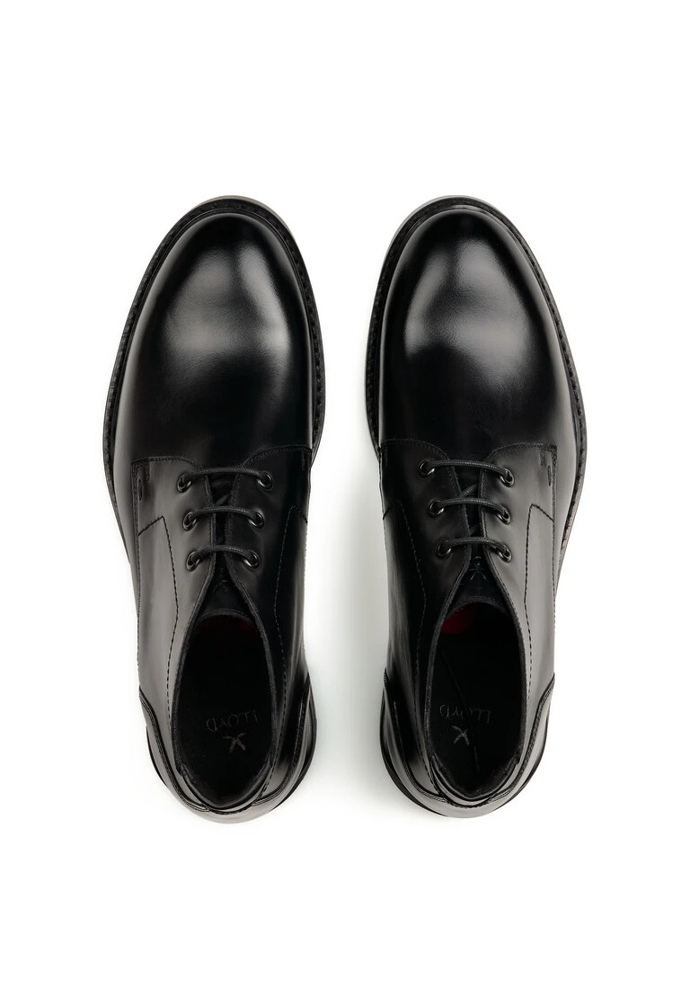Elegance meets contemporary design with the LLOYD VIBE 325 desert boots. These ankle boots, made from high-quality smooth leather, come in a classic black that can be combined in a variety of ways. The inner lining made from a mix of textile and synthetic offers a comfortable fit. The robust rubber sole provides a secure grip on various surfaces. These shoes are ideal for business and leisure occasions. The round toe design creates a modern yet understated look. With the VIBE 325, LLOYD combines a perfect symbiosis of comfort and style.
