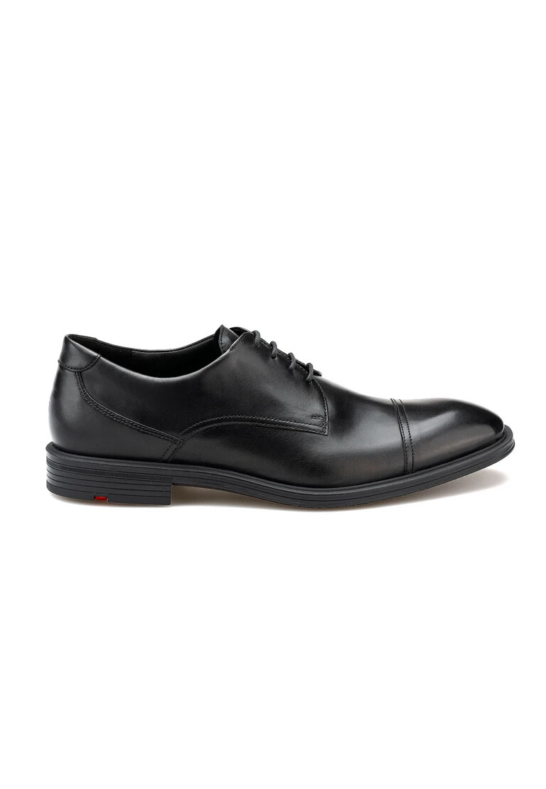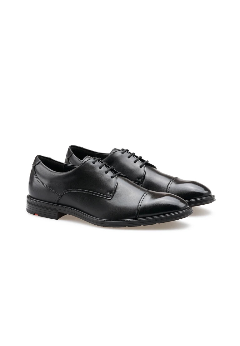 Discover the LLOYD X-MOTION 150, an elegant derby lace-up shoe designed for the modern businessman. Made from high-quality smooth leather in classic black, this shoe exudes timeless elegance. The slim toe gives it a modern touch, while the leather shoe’s 100% leather lining makes it comfortable to wear. Thanks to a removable leather insole, you can adjust the comfort individually. The laces allow you to adjust the fit as required. Ideal for business occasions, this shoe reflects a sophisticated style and high quality workmanship.